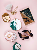 Modernos y sofisticados, nuestros platos premium para fiesta, con diseño decágono de acuarela y borde en oro rosa, reflejan estilo y buen gusto. Perfectos para baby showers, cumpleaños, ocasiones especiales y festividades.