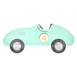 Listos, listos, ¡ya!... A tus invitados les encantará ir a la mesa de la fiesta a disfrutar de una comida con estos fabulosos platos de carreras. Cada paquete contiene ocho platos de papel en cinco colores: rojo, blanco, amarillo, azul y menta, con elegantes detalles plateados.