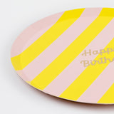 Platos de acompañamiento de feliz cumpleaños a rayas (x 8)