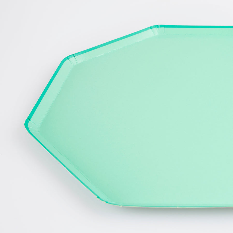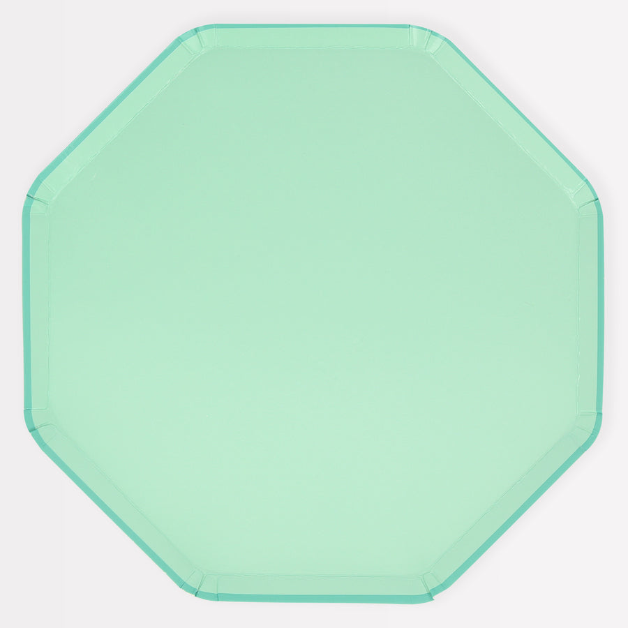 Si buscas darle un toque de color a tu mesa de fiesta, ¡te encantarán estos platos de papel verde espuma de mar de ensueño! El color está presente tanto por delante como por detrás para un efecto elegante, y su llamativa forma octogonal realza el efecto sorpresa. Son ideales para cualquier celebración que busque un ambiente oceánico, como una fiesta de sirenas o bajo el mar. Los platos forman parte de nuestra nueva y elegante versión de vajilla combinable.