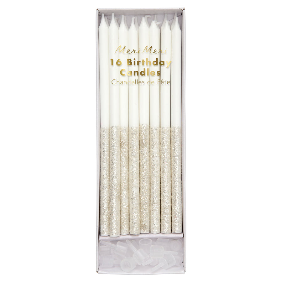 Estas hermosas velas brillantes de dos tonos lucirán realmente impresionantes en un pastel de celebración especial.